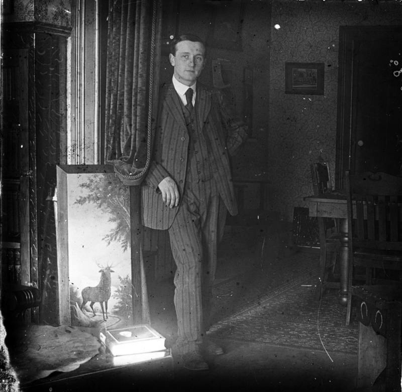 Scan3385CategoryIndividualJohn Lemp in his living room. This photo is from a group of 3.25" square positive glass plates.