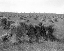 Grain stooks in field