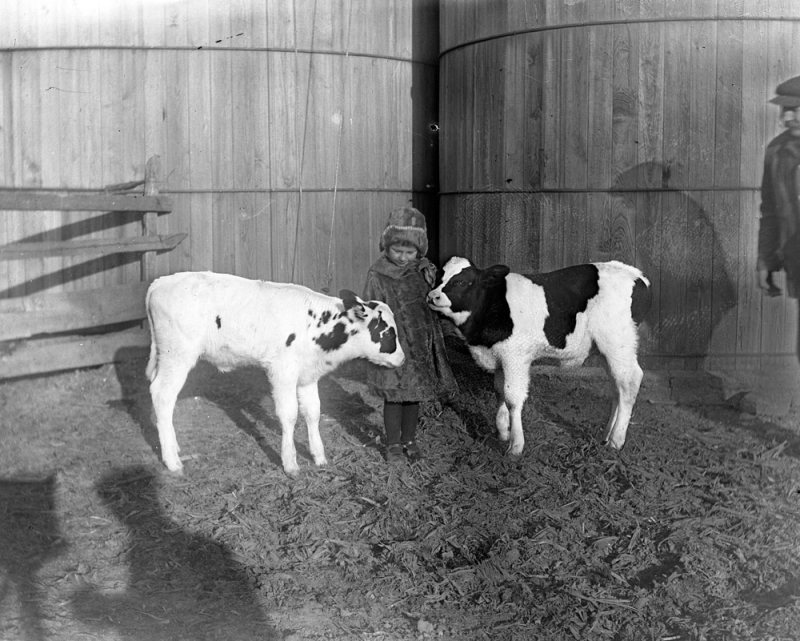 Calves with little girl
