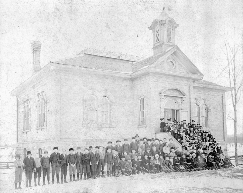 On November 24, 1879, the Tavistock Public School opened with new school master Mr. Abraham Bretz. He had served previously as principal at Sebastopol and was signed one some months earlier to conduct classes in Loth’s Hall, behind the Commercial Hotel.