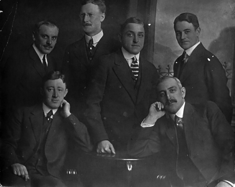 Scan6141Size8x10CategoryPrintsClockwise, from bottom left: James V. Field, Frank Gingerich, H.H. Reid, Austin Hahn, Charlie Kaufman, Harry C. Zimmerman